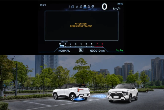 Rear-Cross Traffic Alert mendeteksi kendaraan yang mendekat dari kedua sisi belakang, sehingga memungkinkan keluar parkir dengan aman.